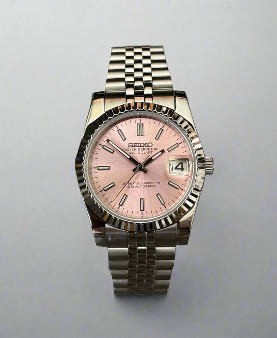 Custom Salmon SeitJust w/ Stainless Steel Bezel and Jubilee Bracelet